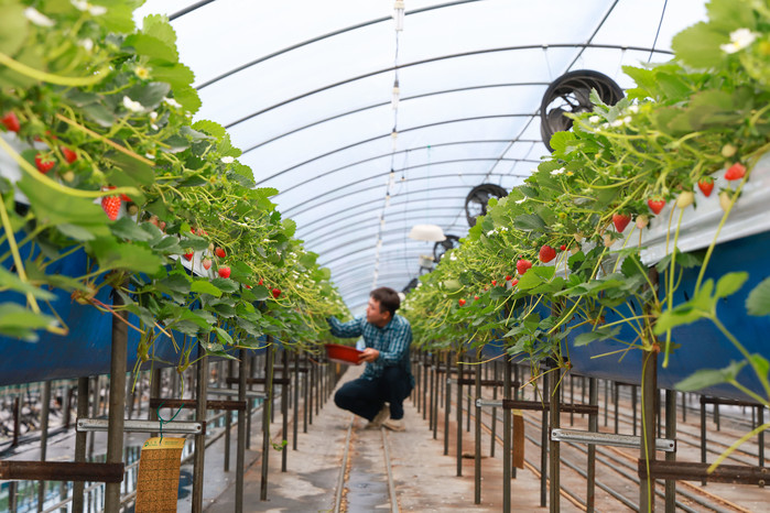 | ▲23일 오전 산청군 신등면 단계리 최종식씨 딸기 농가에서 올해 첫 딸기를 수확하고 있다(사진=산청군) |