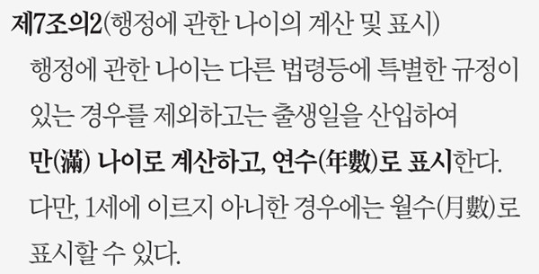 한편 법제처는 27일 ‘만 나이 통일법’ 공포를 기념하는 공포식을 열고 ‘만 나이 통일법’ 개정에 기여한 관계자에게 법제처장 표창을 수여할 계획이다.