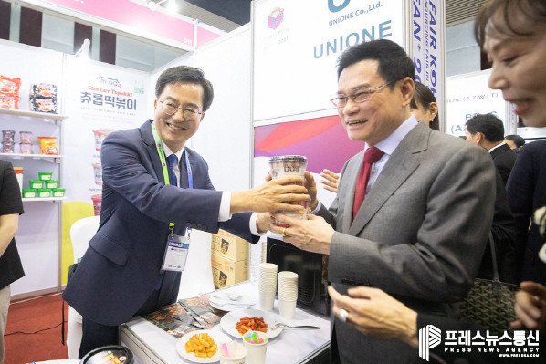 이날 김동연 지사는 개막식 이후 쭈린 락사나위싯 부총리와 전시장을 둘러보며 지페어 참여기업들을 격려했다. 특히 김동연 지사는 즉석떡볶이를 판매하는 식품기업 ㈜유앤아이원(고양시 소재) 부스에서 ‘일일 영업맨’으로 변신해 쭈린 락사나위싯 부총리에게 직접 경기도 기업의 제품을 홍보하기도 했다.