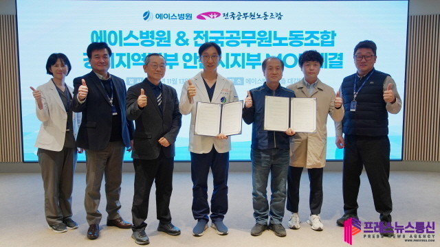[프레스뉴스] 류현주 기자= 에이스병원은 11월 13일(목) 오후, 전국공무원노동조합 경기지역본부 안산시지부와 지역 공무원들의 건강 증진 및 의료서비스 협력을 위한 업무협약(MOU)을 체결했다고 밝혔다.