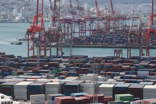 | ▲11일 부산항 신선대부두와 감만부두 야적장에 컨테이너가 가득 쌓여 있다.(사진= 뉴스1) |