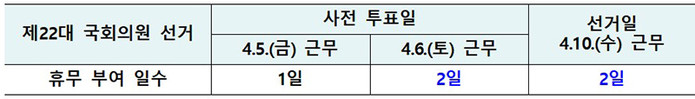 선거일 토·공휴일이면 하루 더…4월 5일 사전투표 때부터 적용 예상