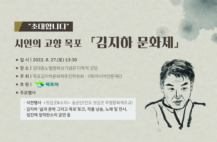 김성옥 목포김지하문화제추진위원회 위원장은 “서거 100일이 지난 시점에서 김지하 시인의 고향인 목포에서 열리는 이번 문화제가 많은 시민들과 함께 치열했던 시인의 삶과 문학을 되돌아보는 시간이 되기를 바란다”고 밝혔다.