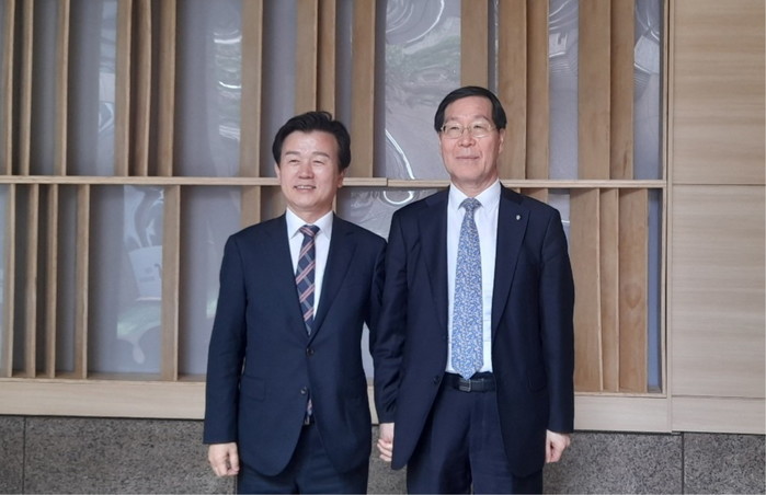 | ▲ 조규일 진주시장(좌)과 한국관광공사 김장실 사장(우) / 사진=진주시 |
