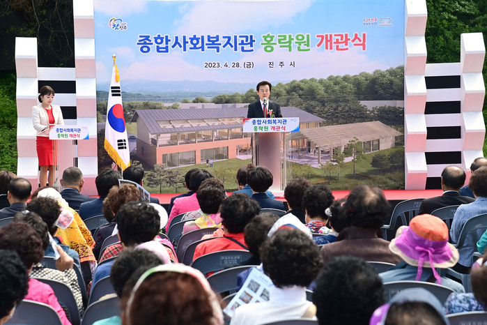 [프레스뉴스] 정재훈 기자= 진주시는 28일 문산읍 월아산로1048번길 26-11에서 조규일 진주시장과 국회의원, 도·시의원, 노인복지 관계자, 지역사회단체장, 시민 등 100여 명이 참석한 가운데 종합사회복지관 홍락원 개관식을 가졌다.