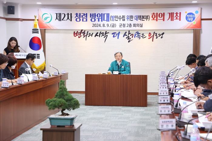 청렴 방위대에서 '방위대'는 '방안수립을 위한 대책본부'의 앞 글자를 딴 것으로 군은 지난 9일 오 군수 주재로 '청렴 방위대' 회의를 열고 부패 취약 분야 논의를 통한 개선 방안 도출을 위해 참석자 전원이 머리를 맞댔다.