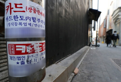 | ▲서울 중구 명동거리에 사금융 대출 알선 전단지가 붙여져 있다.(사진= 뉴스1) |