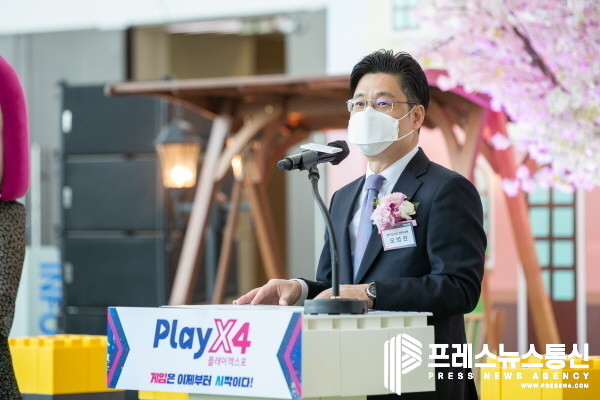 | ▲ 12일 오전 킨텍스 제2전시장 로비에서 열린 2022년 플레이엑스포(PlayX4) 개막식에서 오병권 경기도지사 권한대행이 개회사를 하고 있다.(사진=경기도) |