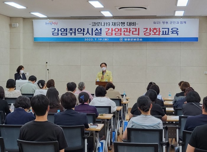 [전남=프레스뉴스] 강래성 기자= 영광군(군수 강종만)은 지난 19일, 하반기 코로나19 재유행 대비 감염취약시설 종사자 50명을 대상으로 보건소 교육실에서 감염병 관리 강화교육을 실시했다고 밝혔다.