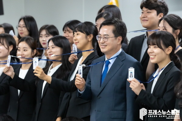 김동연 지사는 이날 참석한 신규 공무원들에게 일일이 공무원증을 목에 걸어주면서 격려와 축하의 말을 전했다. 도는 업무에 필요한 사무용품으로 구성된 ‘031 꾸러미’를 제공해 신규 공직자들이 조기에 적응하고 자부심을 가질 수 있도록 했다.