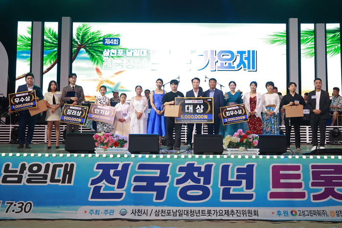 박동식 사천시장은 대상을 수여 전 “참가자들의 젊은 에너지와 넘치는 열정이 한여름밤의 열기보다 더 뜨거운 무대였다. 삼천포남일대전국청년트롯 가요제를 통해 전국의 재능있는 음악 인재를 발굴하고 더불어 사천도 알릴 수 있는 계기가 되길 바란다”고 말했다.