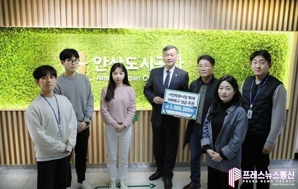 [프레스뉴스] 류현주 기자= 안산도시공사(사장 허숭)는 대형화재 피해로 어려움을 겪고 있는 서천특화시장 상인들에게 임직원이 모은 성금 300만원을 전달했다고 23일 밝혔다.