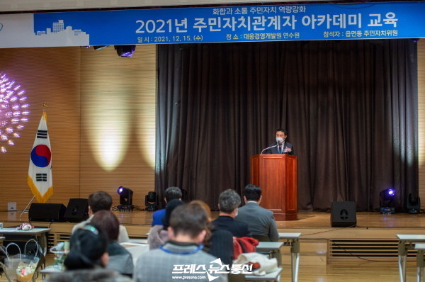 [프레스뉴스] 김대일 기자= 경기도의회 진용복 부의장(더불어민주당, 용인3)이 15일 용인시 소재 대웅경영개발원 컨벤션홀에서 열린 「2021년 주민자치관계자 아카데미」에 참석해 축하했다.