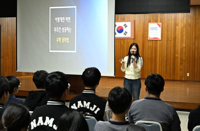 이날 설명회에는 EBS 대표강사인 정유빈 강사와 정제원 강사가 초빙돼 ▲수능 및 내신 수학 과목 학습전략 안내 ▲2026.2027학년도 대입 지원 전략 안내 등을 주제로 2시간 동안 진행됐다.