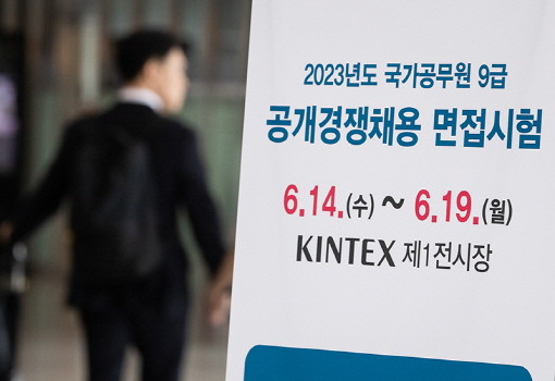 | ▲지난해 6월 경기 고양시 킨텍스에서 열린 2023년도 국가공무원 9급 공개경쟁채용 면접시험에서 면접을 마친 한 응시생이 이동하고 있다. (사진= 뉴스1) |