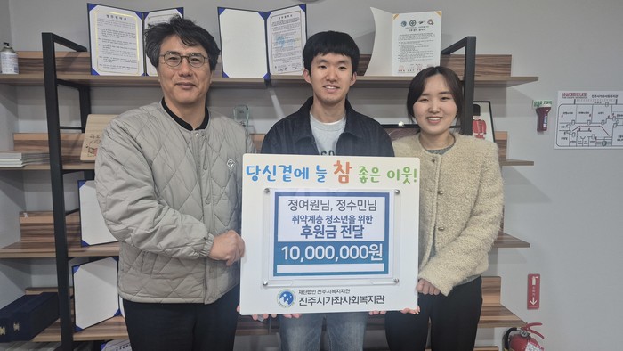[프레스뉴스] 정재학 기자=진주시복지재단(이사장 이성갑) 산하 진주시가좌사회복지관(관장 안지성)은 3일 정여원·정수민 남매 학생으로부터 1천만 원의 후원금을 전달받았다고 밝혔다.