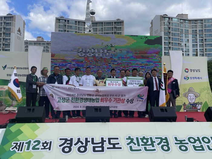 고성군(군수 이상근)은 23일 창원스포츠파크 만남의광장에서 열린 제12회 경상남도 친환경농업인 대회 시상식에서 최우수 기관상, 생태농업대상 단체부문 대상을 각각 수상했다고 밝혔다.