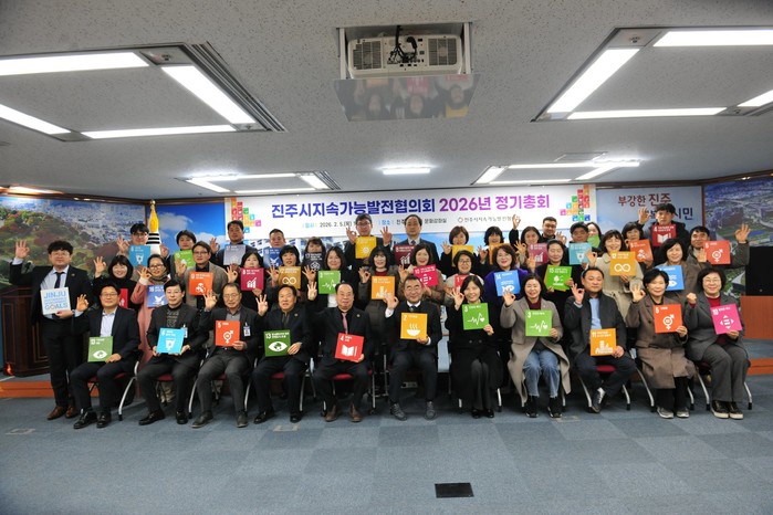 | ▲진주시지속가능발전협의회(이하 지속협)는 2월 5일 진주시청 3층 문화강좌실에서 관계자 50여 명이 참석한 가운데 ‘2026년 정기총회’를 열고 올해 주요 추진 과제를 논의했다. (사진=진주시) |