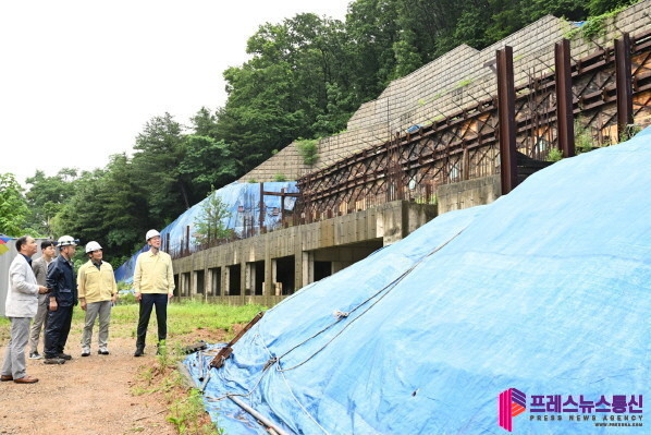 관련 부서장 및 시 소속 전문가들과 함께 현장을 점검한 이 시장은 공사중단 현장 주변의 배수 상태를 중점적으로 확인했다. 아울러, 만일의 사태에 대비한 시설물 붕괴 및 전도, 낙석 등의 위험 요소를 면밀히 점검했다.