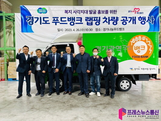 경기도는 26일 경기도사회복지협의회 및 경기도푸드뱅크연합회와 함께 경기광역푸드뱅크(화성시 정남면 소재)에서 복지사각지대 발굴 홍보를 위한 ‘푸드뱅크 랩핑 차량 공개행사’를 개최했다.