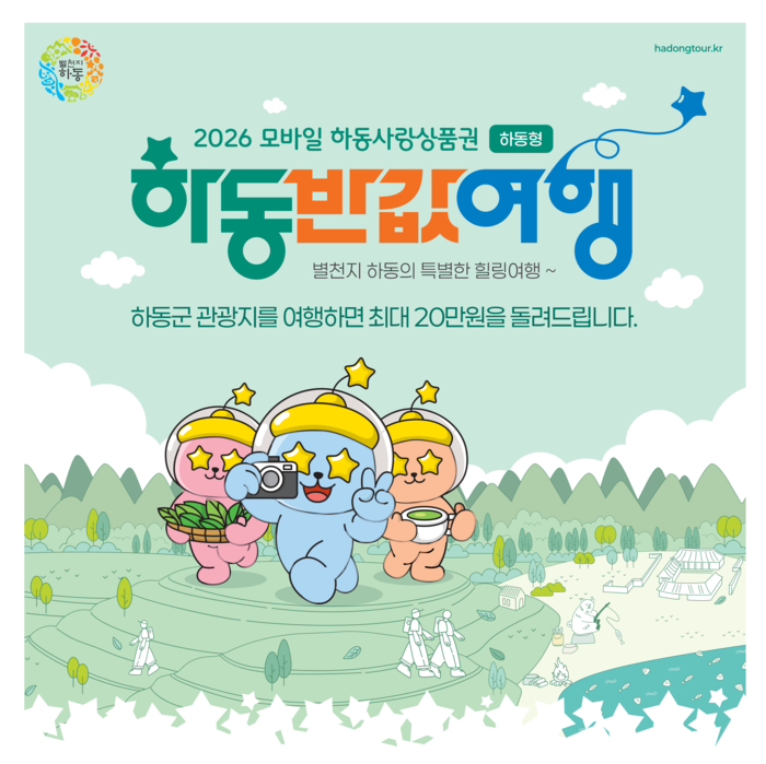 [프레스뉴스] 정재학 기자=하동군이 여행 경비 50% 환급하는 '2026 하동 반값여행(하동형)'을 시작하며 봄철 관광 활성화에 나선다. 관외 관광객이 모바일 하동사랑상품권(정책발행용)을 구매해 음식·관광·숙박·체험 등에 사용하면 사용액의 절반을 상품권으로 돌려받는다.
