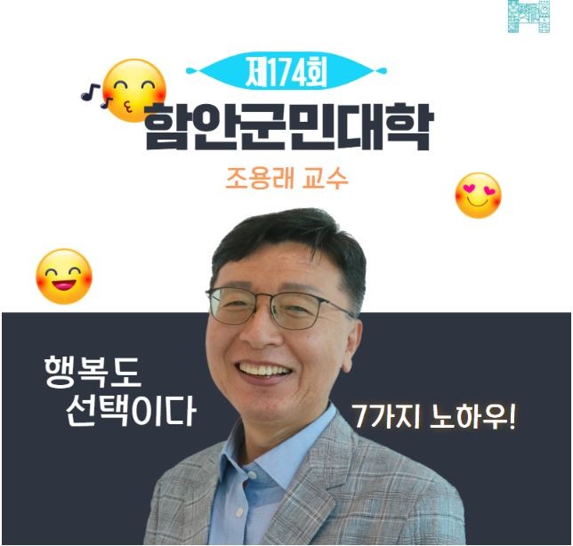 | ▲함안군은 오는 20일 조용래 한림대학교 심리학과 교수를 초청해 가을맞이 제174회 함안군민대학 강연을 개최한다(사진=함안군) |