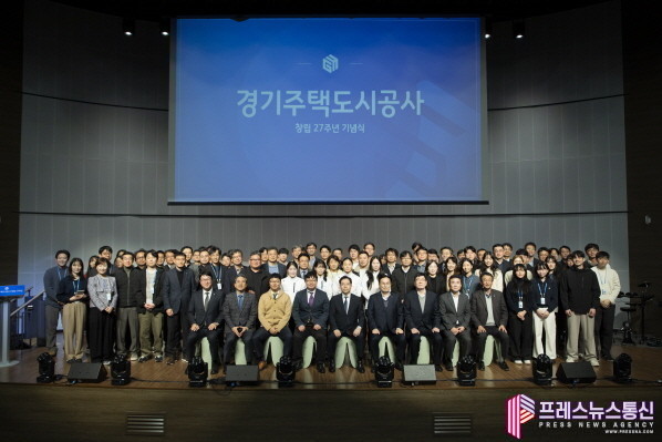 [프레스뉴스] 류현주 기자= 경기주택도시공사(GH)는 광교 사옥 이전 후 첫 창립일(12월1일)을 앞두고 29일 본사 대강당에서 김세용 사장 등 임직원, 경기도 등 유관기관 관계자, 지역주민들이 참석한 가운데 공사 창립 27주년 기념식을 열었다.