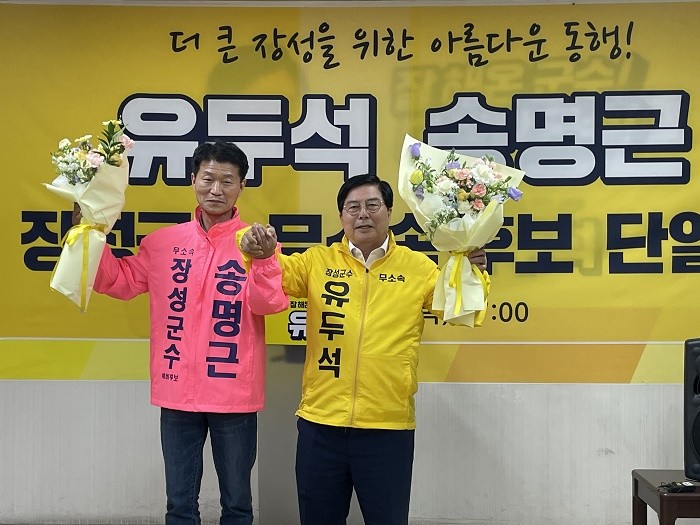 이에 대해 유두석 예비후보는 “송명근 예비후보가 큰 포부를 안고 고향에 돌아왔으나 고향발전을 위해 용단을 내려준 것에 대해 크게 감동했다. 보답하기 위해서라도 반드시 승리하여 장성발전을 견인하겠다”고 밝혔다.