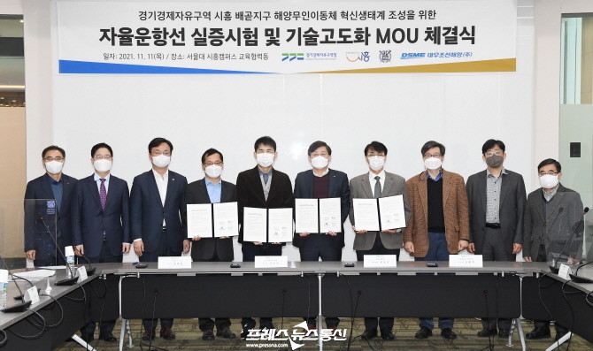 이번 협약은 지난해 6월 시흥 배곧지구가 경기경제자유구역으로 지정된 후 입주기업을 포함해 산·학·연·관이 공동 체결하는 첫 번째 협약이다. 대우조선해양과 서울대 미래해양기술클러스터연구센터가 공동 개발 중인 ‘자율 운항선박 실증사업’을 위한 규제 개선과 기반 시설 지원, 기업 간 생산기술 협력 등에 목적이 있다.