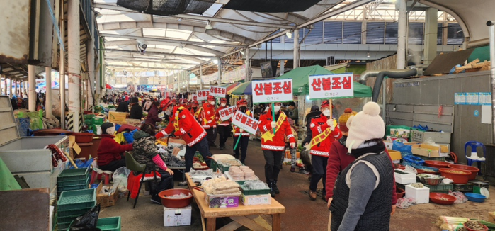 | ▲화순고인돌전통시장에서 진행된 산불 예방 홍보 캠페인 모습(사진제공=화순군) |