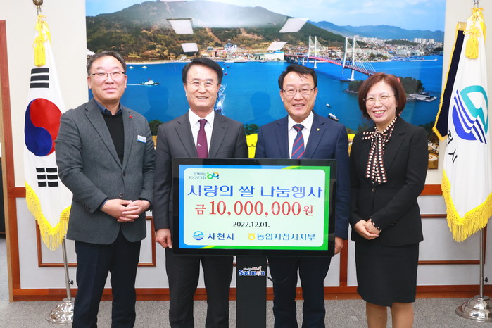 박종국 지부장은 “어려운 상황 속에서도 NH농협을 향한 사천시민의 성원에 항상 감사드리며, 지역사회를 대표하는 금융기관으로서 앞으로도 다양한 사회 공헌 사업을 추진하겠다”고 말했다.