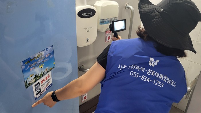 | ▲ 사천 YWCA가정폭력.성폭력 상담소 관계자가 불법카메라 점검을 하고 있다.(사진=사천시) |