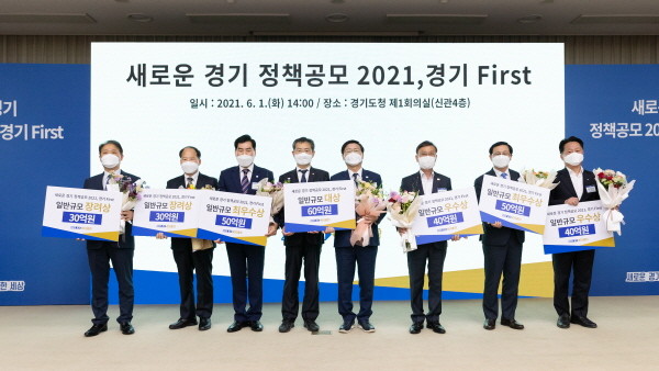 경기도는 1일 경기도청에서 이용철 경기도 행정1부지사와 본선에 오른 11개 시·군 관계자가 참여한 가운데 ‘새로운 경기 정책공모 2021, 경기 First’ 본선을 개최했다.
