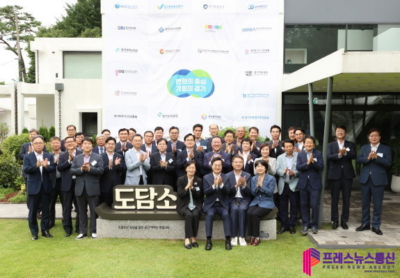 | ▲ 지난 18일 도담소에서 열린 경기도-공공기관 간담회에서 김동연 경기도지사, 28개 공공기관장 등 참석자들과 기념촬영을 하고 있다.(사진=경기도) |