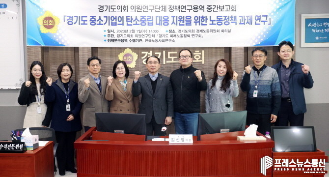 [프레스뉴스] 김대일 기자= 경기도의회 의원들로 구성된 연구단체인 경기도 미래노동연구회 회장 김선영 의원(더민주, 비례)은 1일(수), 경기도의회 경제노동위원회 회의실에서 「경기도 중소기업의 탄소중립 대응 지원을 위한 노동정책 과제 연구」 연구용역 중간보고회를 개최하였다.