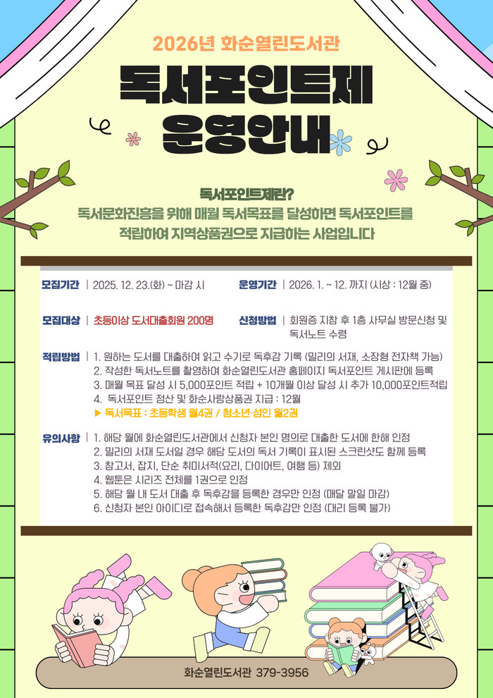 | ▲2026년 화순열린도서관 독서포인트제 운영 안내 포스터(사진제공=화순군) |