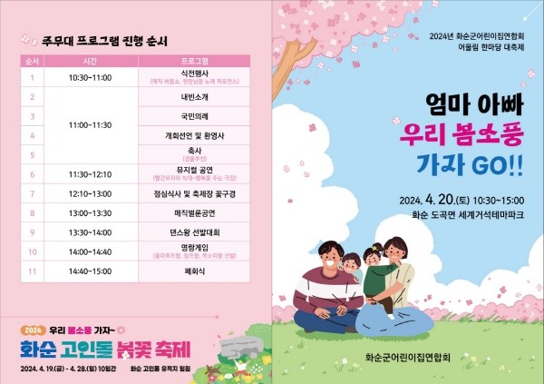 행사관계자는 “코로나19 때는 화순군 어린이들이 한자리에 모일 수가 없었는데 새봄을 맞아 따스한 햇살과 함께 풍요롭고 행복한 한때를 만끽할 수 있도록 준비했다. 많이들 오셔서 축제를 즐겨주시길 바라고 기대하셔도 좋다”라는 자신감을 밝혔다.