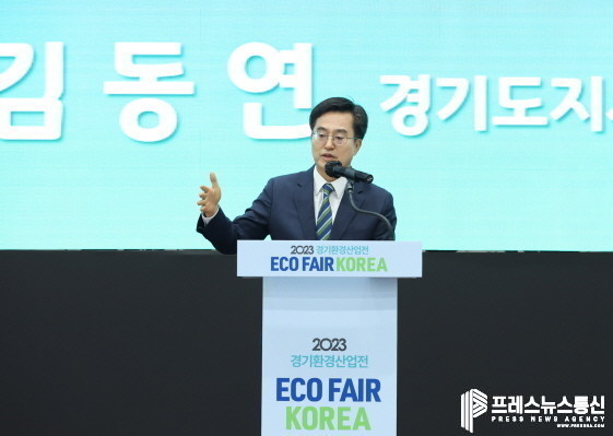 | ▲ 20일 오전 수원컨벤션센터에서 열린 2023 경기 환경산업 展에서 김동연 경기도지사가 환영사를 하고 있다.(사진=경기도) |