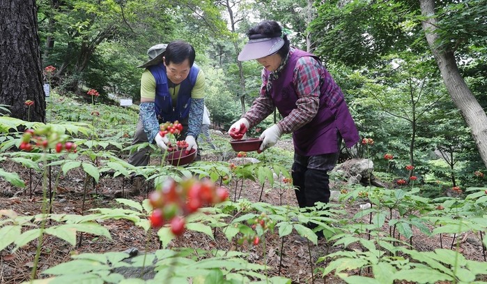 | ▲ 함양 산양삼 씨앗 채취 모습(사진=함양군) |