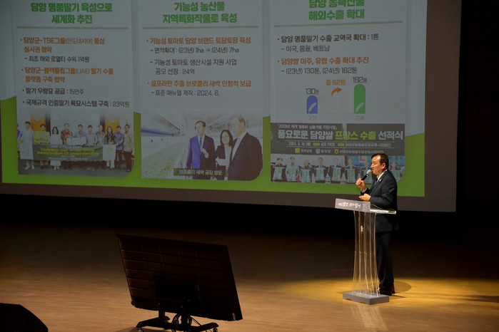 먼저 “지금까지 추진해 왔던 부자농촌 실현을 위해 농업예산을 지속 확대해 왔으며, 127억 원을 투자하는 스마트 축산단지 조성 공모 선정과 담양 명품딸기 육성을 위해 노력해 왔다”라고 농업 분야 성과를 설명했다.