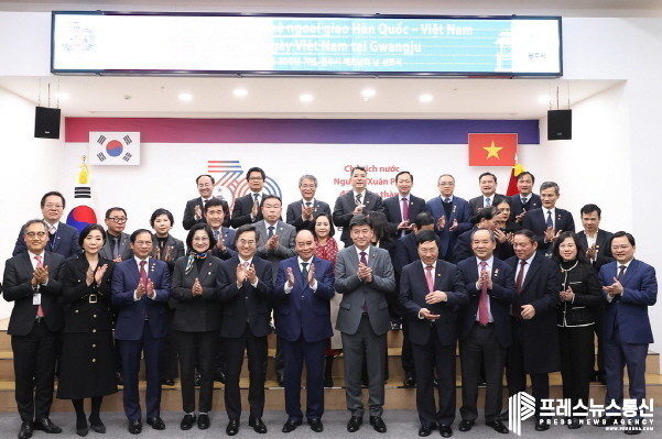 한-베 수교 30주년을 맞아 방한한 응우옌 쑤언 푹 국가주석은 전날 윤석열 대통령과 정상회담을 한 데 이어 이날 김 지사를 만났다. 푹 주석은 광주시 다문화 가정을 격려하고 한-베 양국의 전통·퓨전 공연 등을 관람했다.