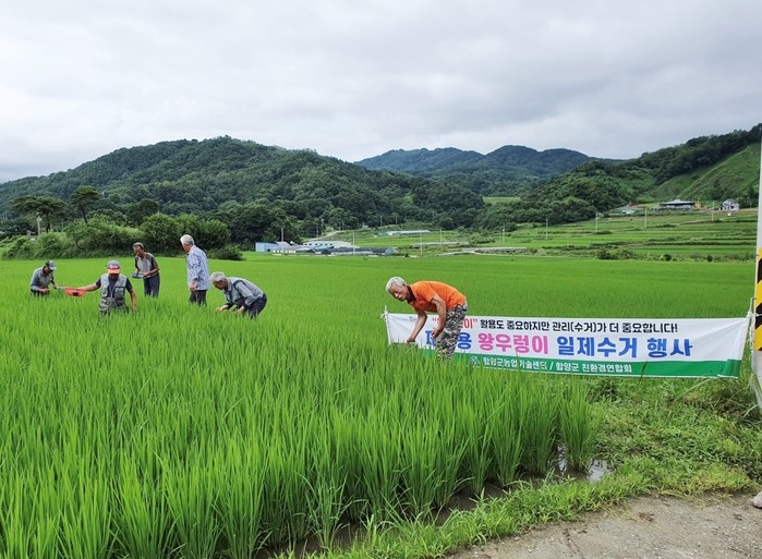 이에 함양군은 논 물떼기 시점 및 장마철 등을 감안해 7월 중순부터 왕우렁이 일제 수거기간을 운영하여 왕우렁이 집중수거를 진행하고, 왕우렁이 지원사업 대상 마을과 왕우렁이 양식장 등에서도 자발적으로 농경지 주변과 농수로에 유실된 왕우렁이와 알을 수거하도록 홍보하고 있다.