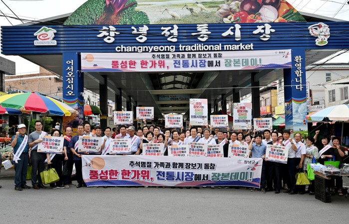 성낙인 군수는 추석 명절을 맞아 군민들에게 전통시장 이용을 적극적으로 홍보하며, “창녕의 전통시장에서 저렴한 우리 농산물 많이 구입해 주시고, 즐겁고 풍성한 한가위 보내시길 바란다”라고 전했다.