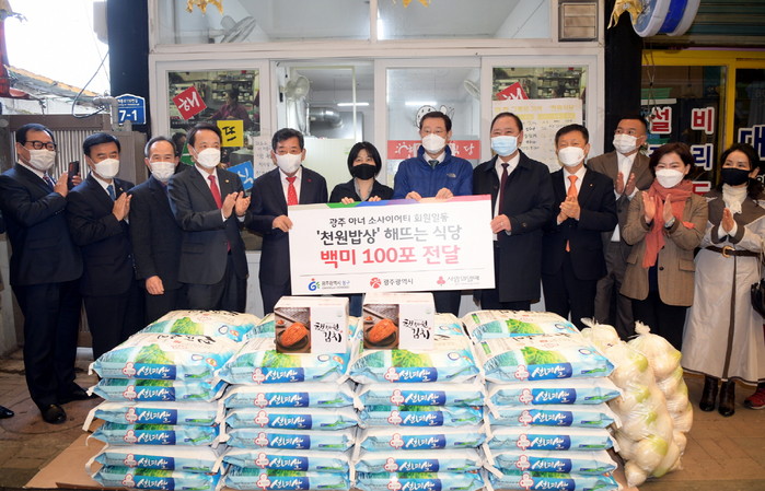 이날 이 시장의 방문에는 임택 동구청장, 시의원, 광주사회복지공동모금회, 아너소사이어티 회원 등이 함께 해 식당 운영의 애로사항을 파악하는 한편, 쌀 20kg 100포(600만원 상당)를 전달했다.