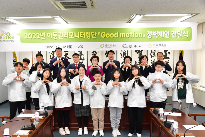 [프레스뉴스] 정재훈 기자= 진주시의회는 굿네이버스 경남중부지부와 지난 12일 지역 내 아동권리 옹호 및 보장을 위한 ‘아동권리 모니터링단’ 정책 제언 전달식을 가졌다.