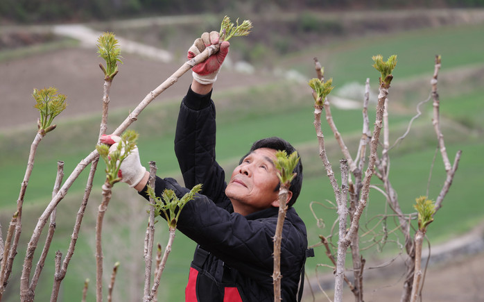 [프레스뉴스] 정재훈 기자= 6일 지리산 자락인 경남 함양군 휴천면 미천마을 뒷산에서 서원홍(62) 씨가 봄철 산나물인 참두릅나무에서 새순을 따고 있다. 두릅의 어린 순은 향긋 하면서도 쓴맛이 일품이며 향이 진하고 단백질, 칼슘, 철분, 비타민 등이 많아 건강식으로 인기가 높다.