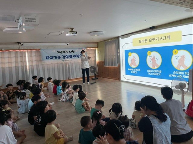 이번 교육은 개소당 5차시로 구성되며 3개소 대상 총 15회 실시한다. 교육 내용은 ▲감염병 예방의 중요성 ▲올바른 손씻기 6단계 및 기침 예절 ▲위생교육 활동북 ▲손씻기 체험(뷰박스) ▲교직원·학부모 대상 감염병 및 결핵예방교육 등으로 다양하게 진행된다.