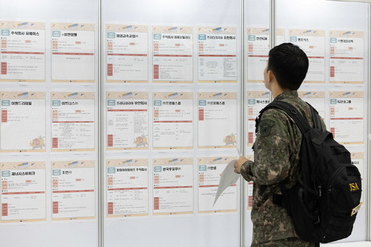 | ▲서울 서초구 aT센터에서 열린 2023 제대군인 취업 박람회를 찾은 전역 예정 장병들이 채용 공고 게시판을 확인하고 있다. (사진= 뉴스1) |