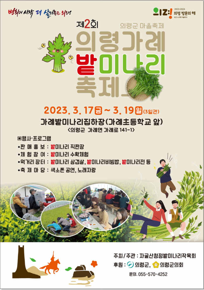 | ▲3월 17일부터 19일까지 개최되는 ‘제2회 의령 가례 밭미나리 축제’ 홍보물(의령군 제공) |