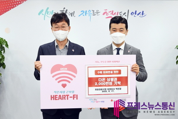 [프레스뉴스] 장현준 기자= 안산시(시장 이민근)는 17일 박천광 제일장례식장 대표이사로부터 수해 이재민을 위한 성금 2천만 원을 안산화폐 다온으로 기탁받았다.